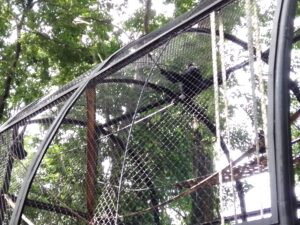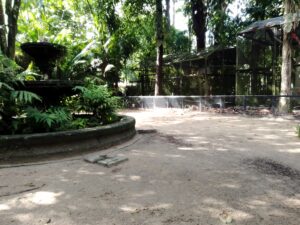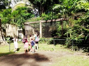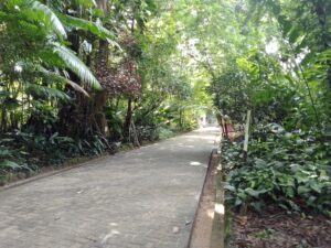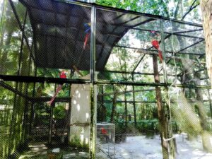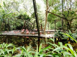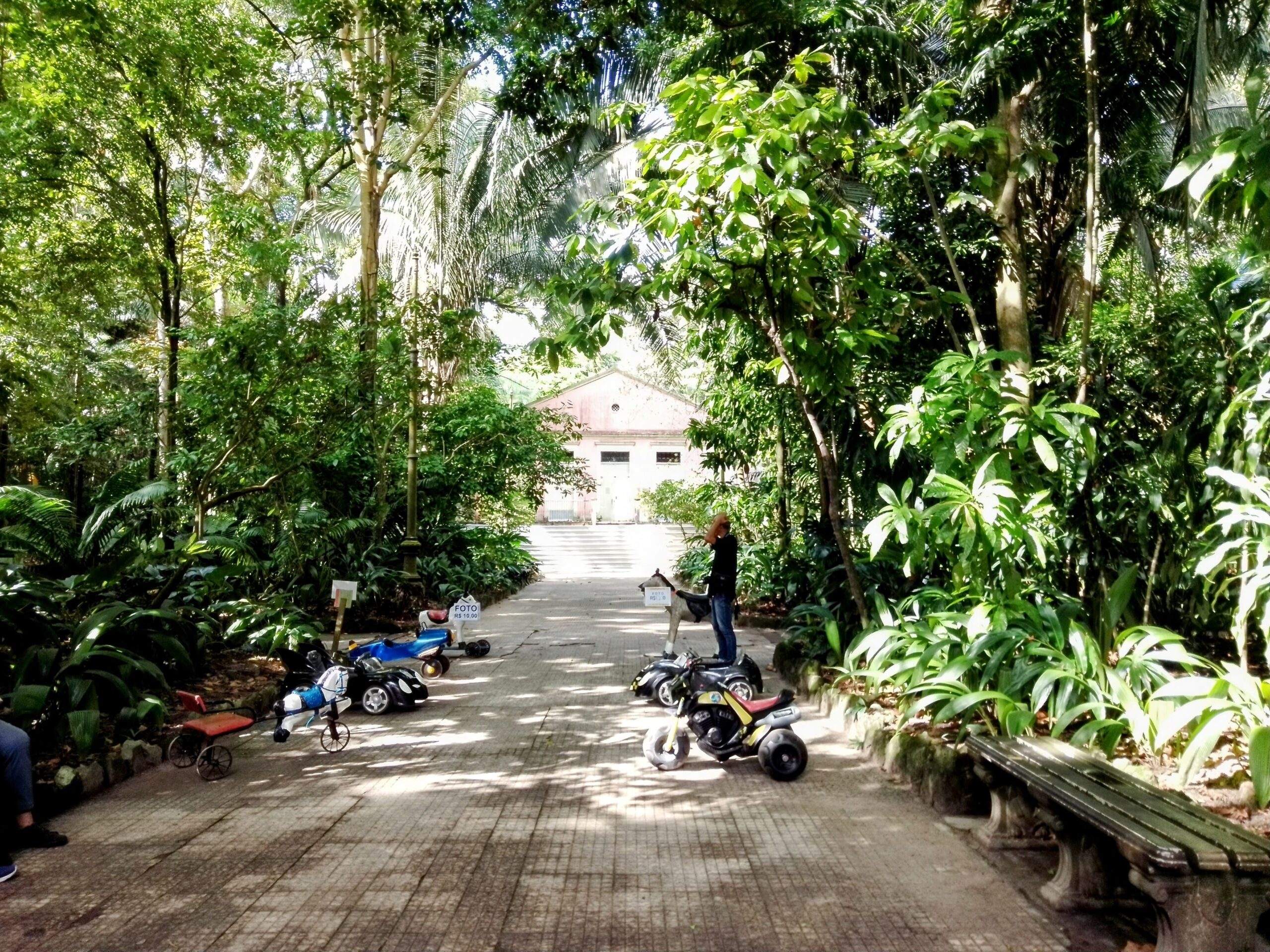 Entre os caminhos sombreados, é possível observar animais típicos da região, como araras coloridas, macacos guaribas, tartarugas e jacarés, vivendo em ambientes que recriam o ecossistema amazônico.